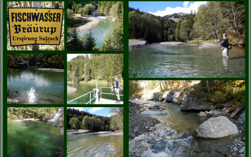 Vom kleinen Gebirgsbach bis zum bekanntesten Fluss im Land Salzburg können sie hier die Salzach auf einer Länge von ca. 45 km befischen. Der obere Teil der Salzach ist ein Gebiergsbach mit kleinen bis mittelgroßen Pools. Er ist mit dem Auto nur bedingt erreichbar. Aufgrund von Schluchten ist sie auch teilweise schwierig zu begehen.